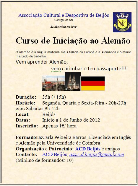 «A Junta de Freguesia de Beijós vai iniciar um projeto de Sala de Estudo/Biblioteca que irá funcionar nas instalações do antigo Jardim de Infância. Neste sentido, necessitamos de voluntários (formação em ensino, animação sócio-cultural, psicologia e outros desde que se sintam motivados para a função) para fazer parte de uma bolsa de voluntários que irá assegurar o acompanhamento aos jovens e crianças na dita sala de Estudo. Aos interessados, poderão contatar via mensagem privada Facebook, email (juntadebeijos@gmail.com) ou pessoalmente com qualquer membro da Junta. Obrigada desde já!»