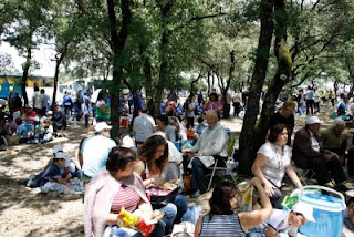Depois de terminar a Eucaristia, as crianças regressaram para junto dos autocarros, onde os pais e restante família já os esperavam para o almoço. Acomodámo-nos num espaço com sombras e, em jeito de piquenique ali passámos a hora de almoço.