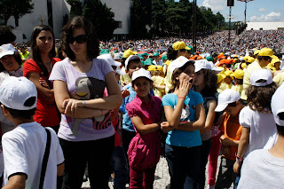 Lá, já uma multidão imensa ocupava todo o espaço mas, serpenteando no meio da confusão lá conseguimos chegar com as crianças até ao espaço que lhes era reservado.